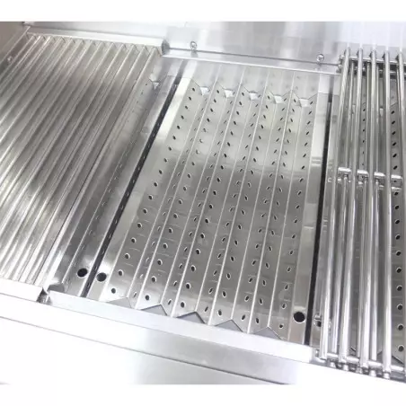 Ce barbecue Ă gaz Ă©quipĂ© de 4 brĂ»leurs principaux horizontaux auxquels s’ajoute 1 brĂ»leur vertical infra-rouge vous impressionnera pas la qualitĂ© de sa conception, sa puissant et ses performances. Conçu en inox 304, il saura rĂ©sister aux intempĂ©ries et vous accompagnera pour de nombreuses annĂ©es.