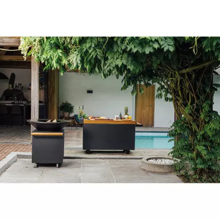 Le OFYR CLASSIC BLACK 100 PRO est la dernière évolution de la gamme des braseros OFYR avec ses 4 roulettes et sa belle poignée latérale en teck