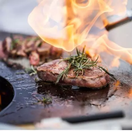 Il suffisait d’y penser : une cuve conique dĂ©posĂ©e dans un pied carrĂ© Ă©vidĂ© dans sa partie supĂ©rieure. Une plaque d’acier trĂšs Ă©paisse permettant une bonne montĂ©e en tempĂ©rature grĂące aux bĂ»ches en flamme dans la cuve. AprĂšs 20 minutes, les bĂ»ches pourront ĂȘtre rĂ©parties sous le pourtour de la plaque afin de gĂ©nĂ©rer des zones de tempĂ©ratures diffĂ©rentes selon vos attentes.